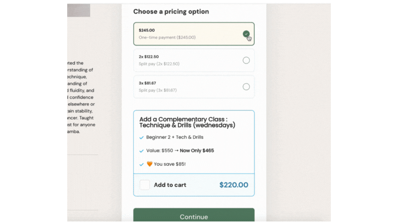 Set up your product with multiple payment options (ie. one-time or 2/3/4-payment plans)