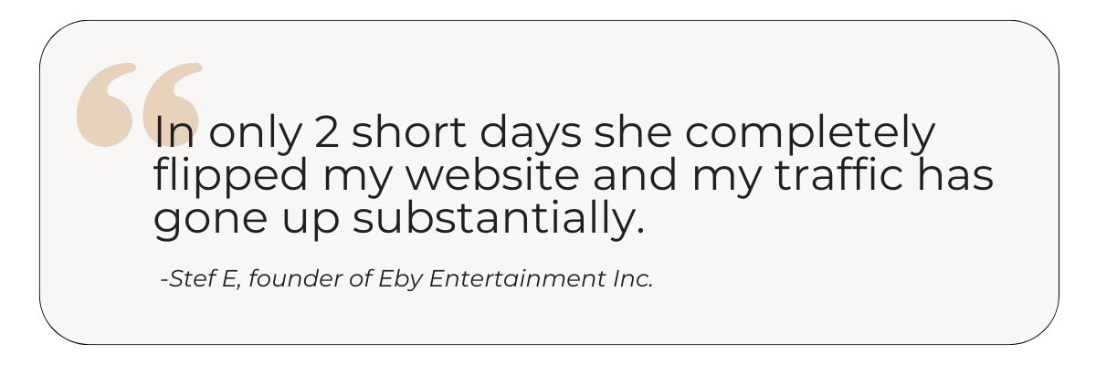 You've tried doing your own website, and things aren't going as planned, nor do you have the time to figure it out. You’re ready to level up with a trusted designer